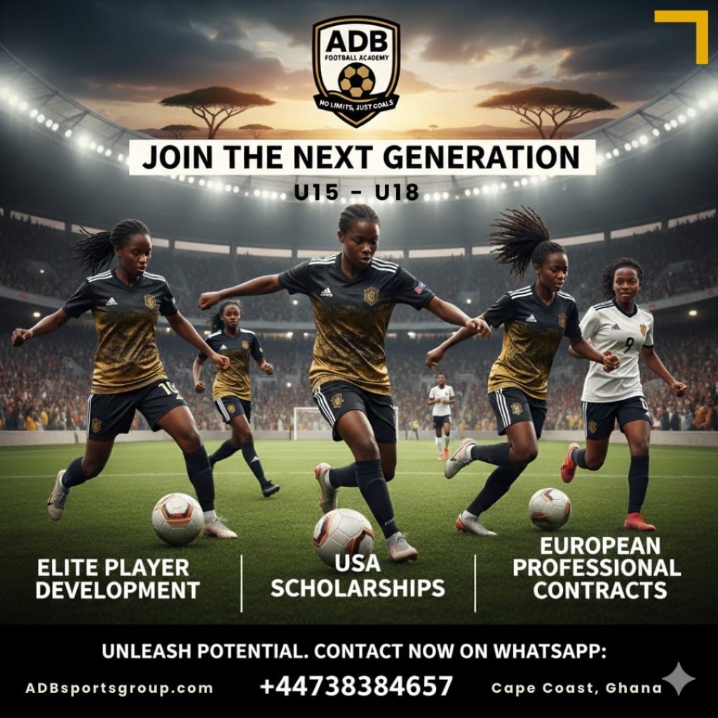 ADB Football Academy is a pioneering football development program based in Cape Coast, Ghana, dedicated to empowering and elevating elite female players aged 14–17.